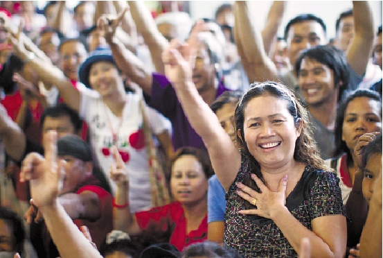 英拉大选获胜后,泰国民众挥手以示欢迎。