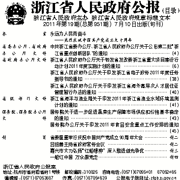 编辑部:(0571)87053687 传真:(0571)87054639 公报电子版网址:zfgb.zj.gov.cn