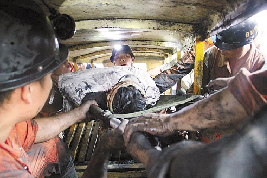 7月10日,广西合山第二名获救矿工顺利升井。 新华社发(黄威 摄)