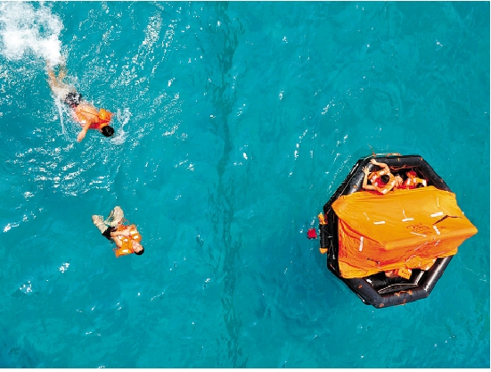 尽管船舶装备大为改善,海上航行已十分安全,但海上求生依然是海员的基本功,图为在舟山举行的“2011中国海员技能大比武”现场。 新华社发