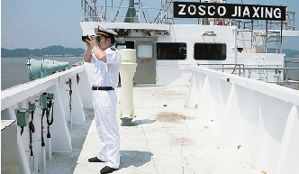 浙远嘉兴轮船员正在瞭望。 苏志敏 夏春新 摄