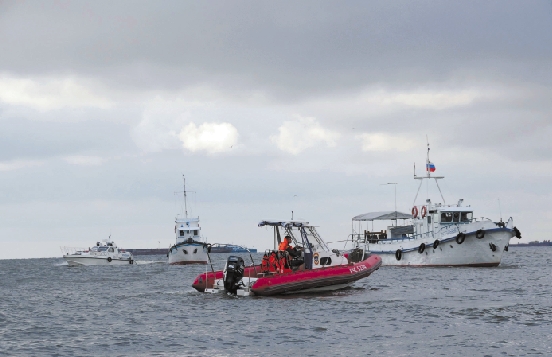 7月11日,救援船只在俄罗斯鞑靼斯坦共和国境内发生沉船事故的河段进行搜救。 新华社发