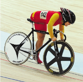 图为第八届残运会自行车项目C2级运动员在比赛中。 陈熙春 潘良干 摄
