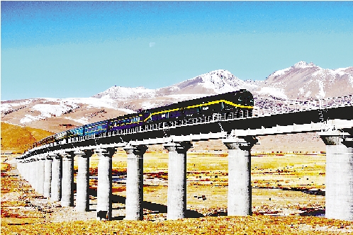 经济建设成就辉煌。图为列车驶过藏北草原。 姚海全 摄