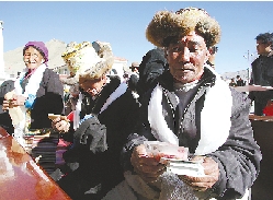 社会事业全面进步。图为西藏农牧民领取新型农村社会养老保险金。 青阳多旦 摄