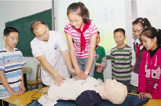 衢州柯城区新世纪学校医护人员为小学生讲解防溺水安全知识。 吴铁鸣 周玉荣 方明珍 摄