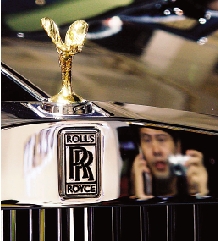 豪华车受高端人群热捧。一顾客正细看劳斯莱斯。