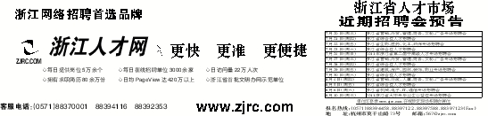 | 7月27日(周三) | 浙江省营销、外贸、管理、财务、文秘、广告专场招聘会 |