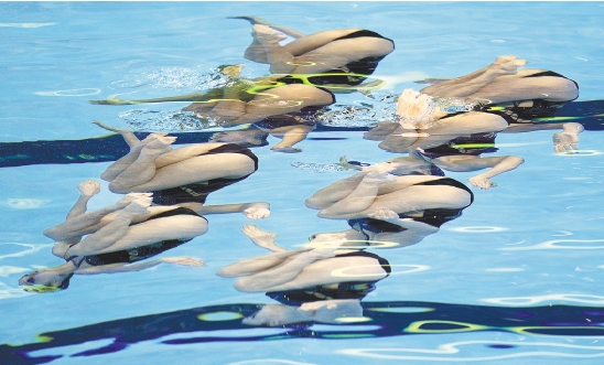 昨天在第14届国际泳联世界锦标赛花样游泳集体技术决赛中,中国队以96.800分的成绩获得银牌。 新华社发