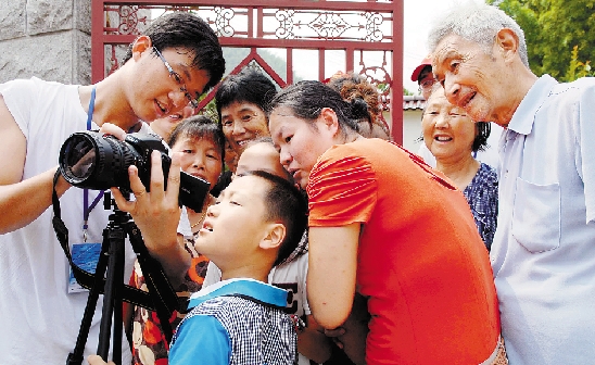 日前,浙工大暑期社会实践队专程来到长兴槐坎六都村,为留守老人和儿童拍摄全家福。 周雨顺 摄