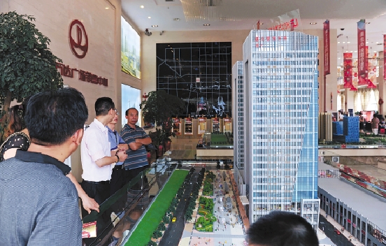 7月24日,在廊坊市中心一个售楼大厅内,购房者在咨询。 新华社记者 王民 摄