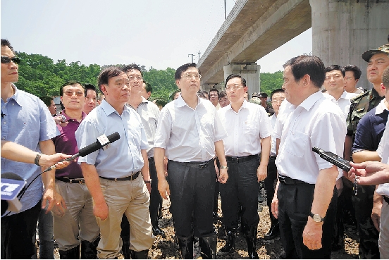 7月24日中午,中共中央政治局委员、国务院副总理张德江来到事故现场。 本报记者 嵇哲 摄