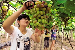游客在余姚临山味香葡萄园采摘。黄士杰 摄
