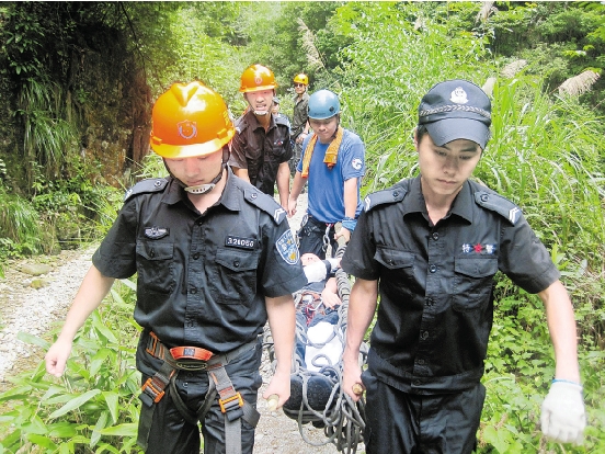 日前,武义县公安局巡特警大队等组织开展山地救援演练。 卢宣新 摄