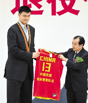 7月25日,“姚明退役仪式暨表彰典礼”在北京举行。姚明被授予中国奥林匹克金质奖章和体育运动荣誉奖章,中国篮球杰出贡献奖,中国男篮终身荣誉队员。