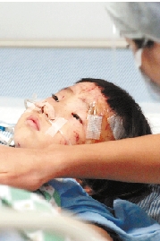 被消防官兵救出的两岁女孩项炜伊在医院接受治疗。本报记者 李震宇 摄
