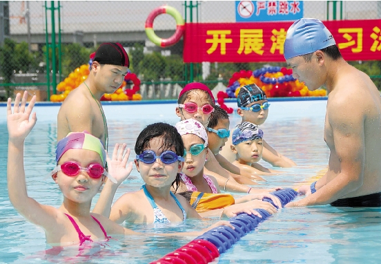 7月26日,海宁市尖山新区黄湾镇行知小学的游泳池投入使用,当地计划三年内让一半以上农村孩子学会游泳。