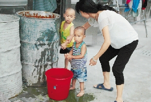正在接水的居民。