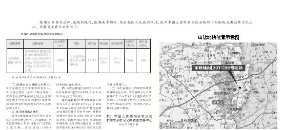五、本次挂牌出让详细资料请参阅挂牌出让文件。有关挂牌出让文件资料可于2011年8月5日起到杭州市余杭区公共资源交易中心(余杭区临平南大街265号时代广场市民之家三楼)L8号窗口索取。