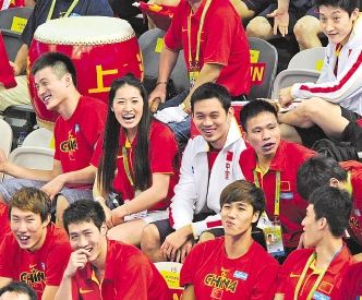 7月26日,泳坛名将罗雪娟在看台上为自己的队友们加油。 记者 潘良干 摄