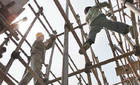 看不清他们的脸,更不知道他们的名字,只看到他们在工地上忙碌的身影。7月26日,德清体育中心的建设工地上,工人们在高温下作业。 宣宏 摄