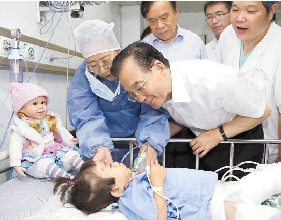 温家宝特地来到温州医学院附属第二医院看望小伊伊。 新华社记者 黄敬文 摄