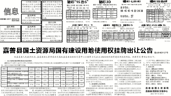 六、本次国有建设用地使用权挂牌地点为嘉善县招投标交易中心;挂牌时间为2011年8月19日上午8时30分至2011年8月30日下午3时30分。