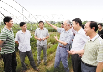 农资商品应用技术顾问团专家在兰溪市游埠镇为“两区”农户现场指导。