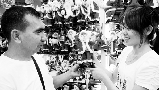 | 义乌:圣诞用品迎旺季 8月至9月,是义乌市场圣诞用品外贸出口的旺季。为规避汇率风险,近段时间义乌市场的圣诞用品出口几乎全部使用人民币结算,而且许多圣诞用品生产企业也不敢与外商签订下年度用美元结算的订单。图为一位俄罗斯客商正在义乌国际商贸城采购挑选圣诞用品老人小玩偶。 张建成 摄 |