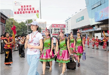9月7日,参加第九届全国少数民族传统体育运动会的浙江省代表团抵达贵州。 宋健浩 摄