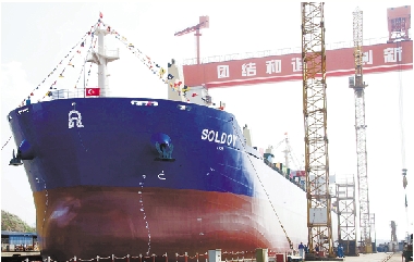 9月6日,舟山市大神洲船舶修造有限公司建造的首艘57000吨 “PSPC”散货船顺利下水。“PSPC”是近年国际海事组织的一项新规定,基本目标是使涂层达到15年的目标使用寿命。 本报通讯员 胡社友 曹余 摄