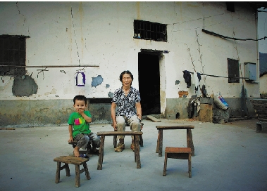 58岁的葛双莲和孙子在自家院子里。两个女儿出嫁了,一个儿子在杭州做电工。 本组图片由记者 董旭明 摄