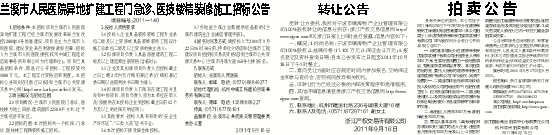 兰溪市人民医院异地扩建工程门急诊、医技楼精装修施工招标公告