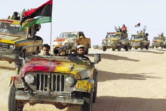 9月16日,在利比亚苏尔特,反卡扎菲武装士兵驾车行驶。 新华社发