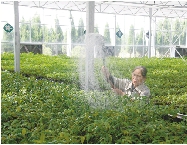 为无柄小叶榕幼苗浇水。叶圣义 摄