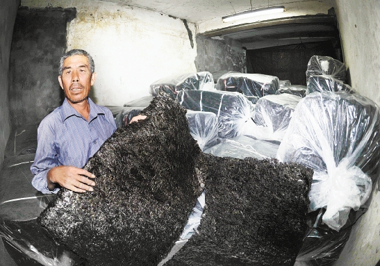 吴根寿看着满屋子的紫菜,很是发愁。温岭日报记者 吴鹏飞 摄