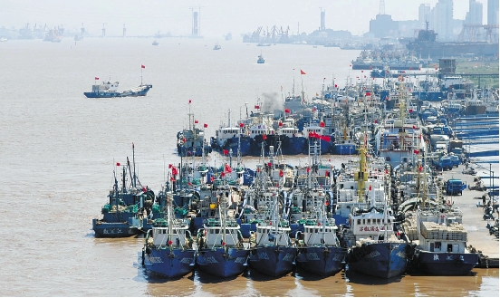 9月19日,台州海门港渔业市场码头,停满了回港避风的渔船。受北方冷空气和15号强热带风暴“洛克”外围环流共同影响,未来三天浙江沿海将刮起8至10级偏北风。