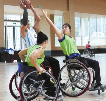 轮椅篮球队在训练中。 黄子诚 摄