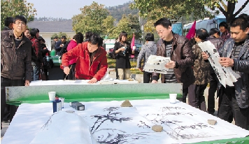挥毫泼墨,村民描绘美丽的家。