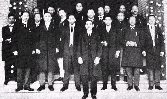 图为1912年1月,孙中山和总统府官员合影(资料照片)。 新华社发