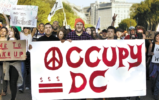 10月8日,“占领华盛顿”游行示威者从美国首都华盛顿的白宫附近经过。 新华社发