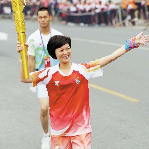 拿到火炬的那一刻,娄小仙笑得很灿烂,她在志愿者护卫下缓缓前行,将火炬顺利交接给了第二棒孟关良。“太紧张了,比参加世界大赛还紧张。”仪式后,娄小仙紧紧攥着手中的火炬,“平时自己忙于训练,都是丈夫在家带4岁的女儿。这次家人没时间来现场,我回去一定要让老公女儿好好看看火炬,珍藏起来。”