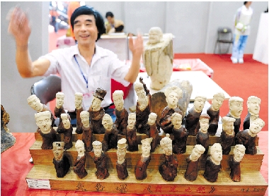 在我省残疾人事业成就展上,残疾人展示雕塑作品。 潘良干 摄