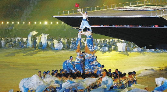 10月10日晚,八届残运会开幕式进行最后一次“热身”。 吴煌 魏志阳 摄