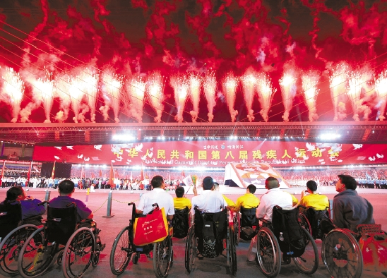 10月11日晚,中华人民共和国第八届残疾人运动会在杭州黄龙体育中心隆重开幕。 魏志阳 吴煌 摄