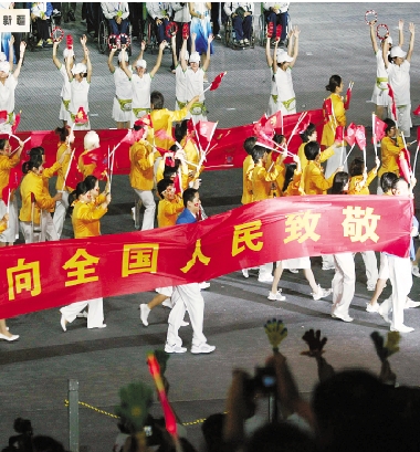 10月11日晚,浙江代表团入场。 吴煌 魏志阳 摄