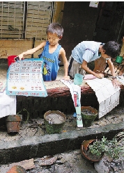 10月11日,在菲律宾布拉干省的一所学校,孩子们把在台风带来的洪水中淹没的教学资料晒干。菲律宾政府9日公布数字显示,过去两周内,连续两轮台风袭击已致死101人,数万人被迫转移。 新华社发