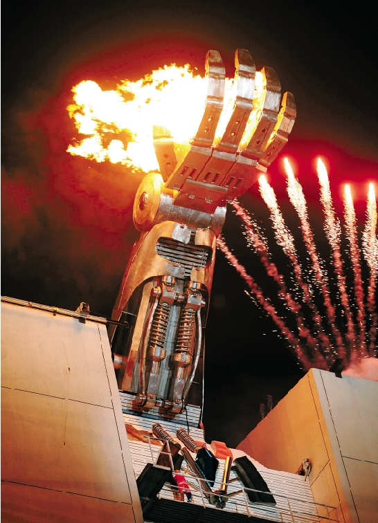 10月11日晚,杭州黄龙体育中心,八届残运会开幕式现场主火炬点燃。 本报记者 胡元勇 摄