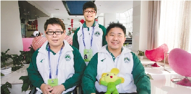 10月17日,第八届全国残运会嘉兴分场乒乓球项目的比赛全部结束。瞧,澳门队的队员在比赛后合影。 记者 邵全海 摄