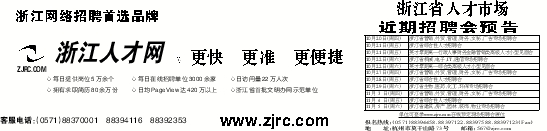 | 10月27日(周四) | 浙江省营销、外贸、管理、财务、文秘、广告专场招聘会 |